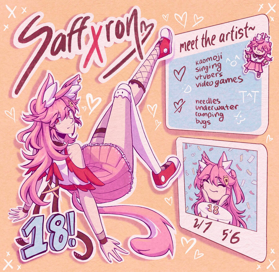 hihi, saffxron here~!i’ve been drawing since before i can remember, but only got serious about it in 2020. my passions lie in character design, animation, and illustration! my hobbies include playing video games, singing karaoke, and sewing.i hope to spread my art, far as i can, to provide a source of inspiration and happiness!